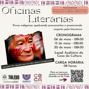 Dentre as atividades do projeto, está prevista a promoção de ações formativas para os profissionais da área da educação em relação à literatura. Desta maneira, a Secretaria Municipal de Cultura e o CECA-Unioeste Cascavel promovem em abril um Ciclo de Formação aos educadores, intitulado "Oficinas Literárias: Povos indígenas: quebrando preconceitos e promovendo respeito pela literatura". Ao todo, serão ofertados três eixos de aprendizado que, juntos, somam oito horas de carga horária com certificação.