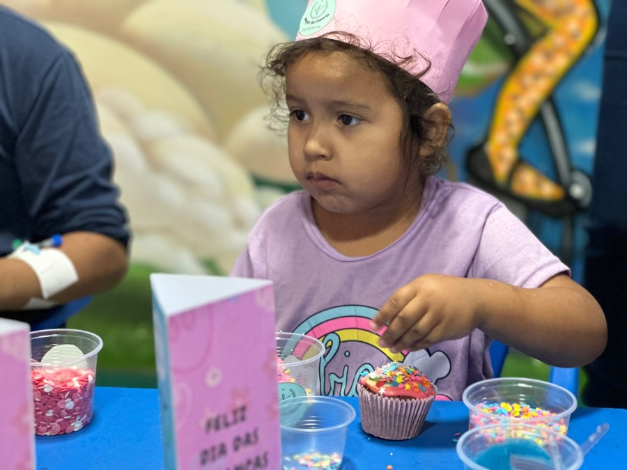 A semana das crianças na Associação Beneficente de Saúde do Oeste do Paraná (Hoesp) - Hospital Bom Jesus está cheia de diversão. Na programação tem música, cinema, fantoche, massinha de modelar e eles inclusive viraram confeiteiros e garantiram uma bagunça boa.