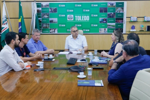 A Sala de Reuniões do Gabinete do Prefeito de Toledo foi palco, na manhã desta quarta-feira (29), de um encontro que visou ao fortalecimento da colaboração entre o governo municipal e entidades do Sistema Fecomércio/PR. O evento contou com a presença do diretor para Assuntos Sindicais da Federação do Comércio de Bens, Serviços e Turismo do Paraná (Fecomércio/PR), Beloir João Rotta, e dos gerentes executivos das unidades locais do Serviço Nacional de Aprendizagem Comercial (Senac) e do Serviço Social do Comércio (Sesc), Shenia Uez e Fernando Turim, respectivamente. Também participou o técnico de Relações com o Mercado do Senac em Toledo, Oswaldo Junior.