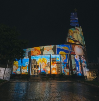 SESC-PR iluminou o Natal Encantado de Toledo com Projeção Mapeada na Catedral Cristo Rei