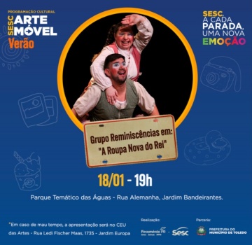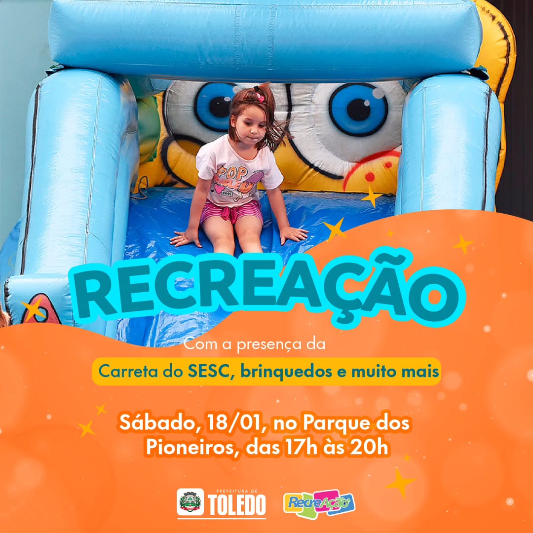 Neste sábado, dia 18 de janeiro, o Serviço Social do Comércio (Sesc) Toledo, em parceria com a Prefeitura, convida a população para uma tarde repleta de diversão no Parque dos Pioneiros, a partir das 17h00. O evento, que promete ser um sucesso, traz uma programação especial para todas as idades, com atividades para as crianças e para toda a família.