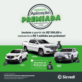 Em sua 3ª edição, a Promoção Aplicação Premiada da Sicredi Progresso PR/SP foi lançada nesta segunda-feira (03) e segue até dezembro de 2025. Desta vez, serão sorteados R$ 1 milhão em prêmios.