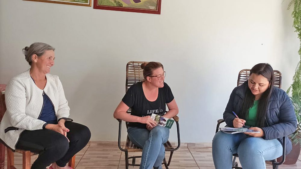 A produtora rural Dirce Vorpagel, de Quatro Pontes, aceitou participar do projeto. Ela e a nora, Vivian Luana Klein, receberam a equipe do Sindicato Rural e Senar, ouviram a breve explanação do projeto ATeG e formalizaram a participação. Com isso, o Sítio receberá o técnico para auxiliar na atividade que é conduzida atualmente pela família. Hoje, a produção local é de 850 litros de leite por dia. O plantel é composto de 89 animais, sendo 39 vacas.