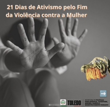A Secretaria de Políticas para Infância, Juventude, Mulher, Família e Desenvolvimento Humano (SMDH) promove em Toledo, desde o dia 20 de novembro, a edição de 2024 da campanha "21 Dias de Ativismo pelo Fim da Violência Contra as Mulheres". A iniciativa, que se estenderá até 10 de dezembro, tem como objetivo conscientizar a população sobre a urgência do combate à violência de gênero e mobilizar ações concretas para promover a igualdade e a proteção dos direitos das mulheres.