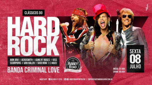 Criminal Love é uma banda de Hard Rock formada em Cascavel, e sua atração no melhor Pub de Toledo e região, será repleto de muita música boa, aos sons das grandes bandas Guns N' Roses, Kiss, Aerosmith, Bon Jovi, Scorpions, Van Halen, Skid Row e muito mais.