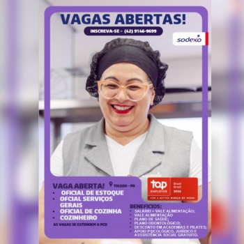 Se você se interessa por alguma dessas vagas, envie o seu currículo para o WhatsApp (42) 9-9146-9699 (clique para chamar) e aproveite essa oportunidade de trabalhar em uma empresa de renome com ótimas vantagens.