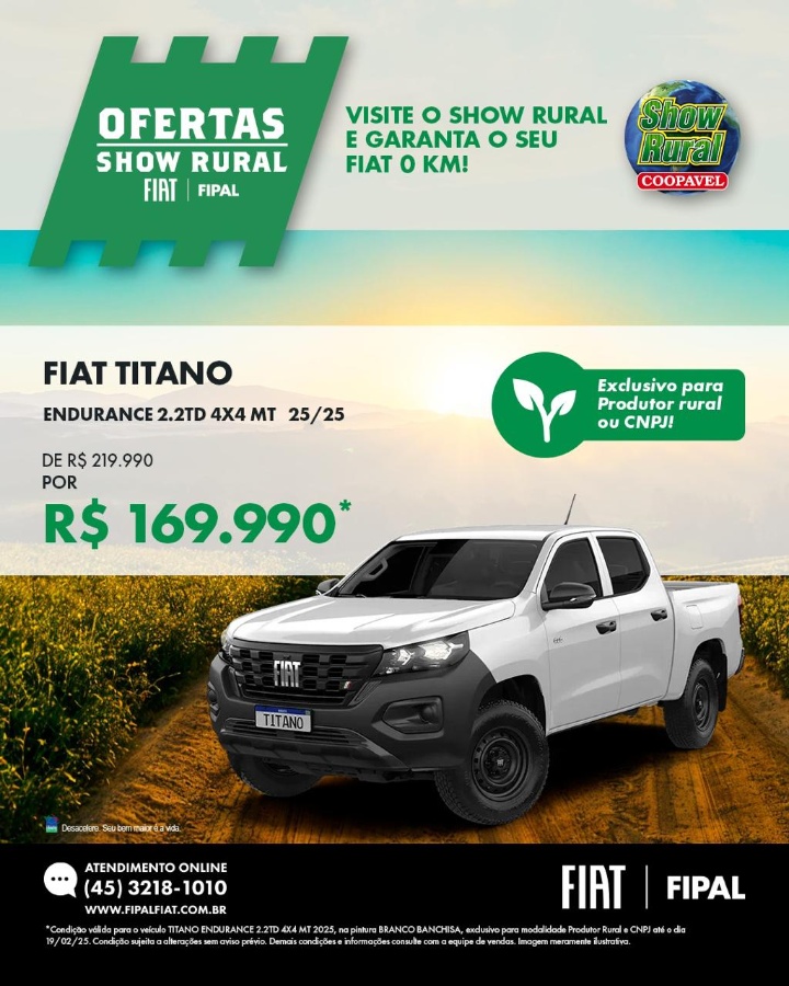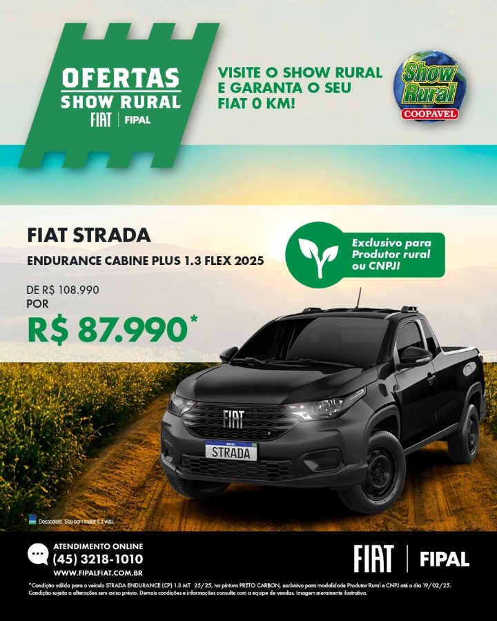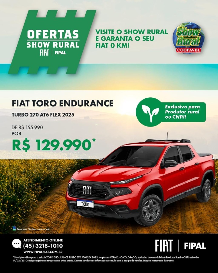 🔥 Ofertas Show Rural na Fipal Fiat de Toledo – Válidas até este sábado, 15/02! 🔥