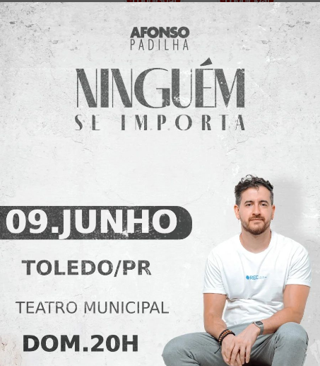 Afonso Padilha, um dos grandes talentos do stand-up comedy brasileiro, está prestes a se apresentar em Toledo. A apresentação do artista no município será no próximo domingo, dia 09 de junho, a partir das 20h00, no Teatro Municipal, localizado na Rua Santos Dumont, Nº 2.626, na Vila Industrial. Os portões do teatro abrem às 19h00.