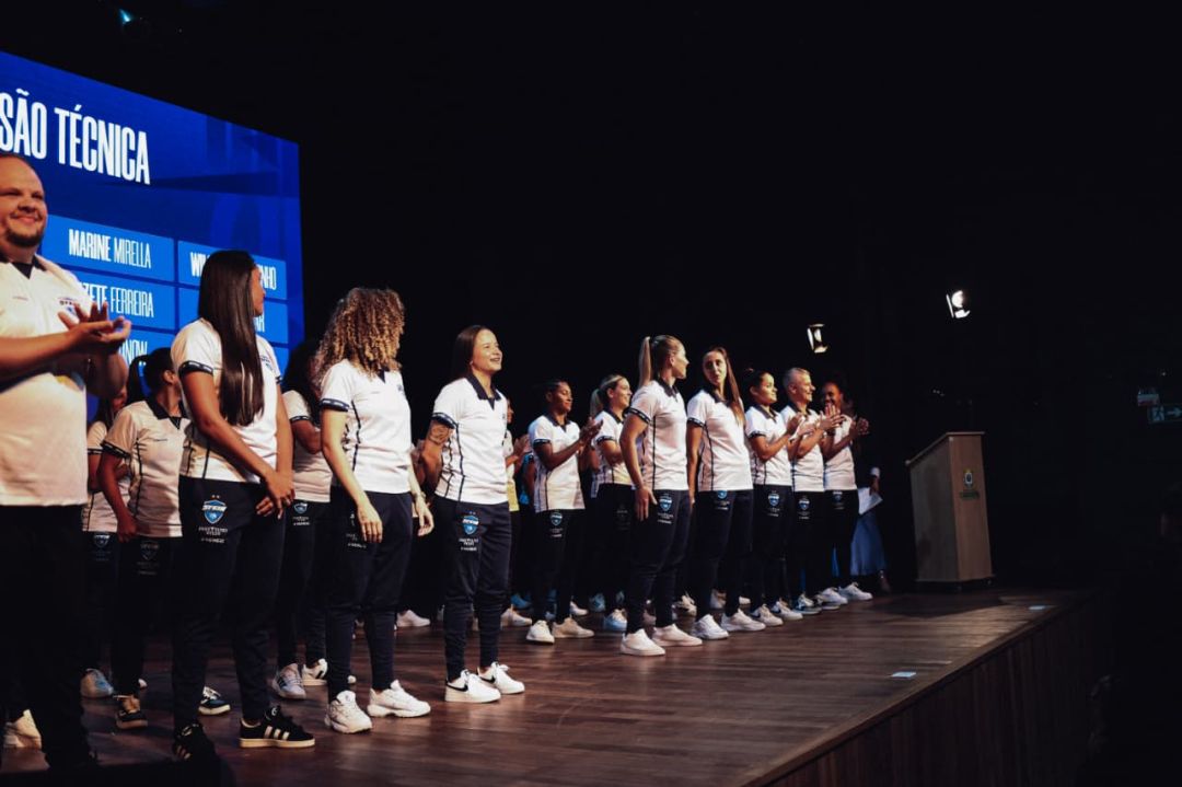 No palco do Teatro, foram apresentadas as 23 atletas que vestirão a camisa azul e branca nesta temporada. Entre elas, estão novas contratadas, como a Julia, que veio de Santa Catarina, e a Vanessinha, que já jogou em clubes como o São José e o Female, de Chapecó-SC; atletas da casa, como a pivô Bebel e a goleira Bianca; e jogadoras que subiram das categorias de base para compor a equipe profissional, como a Mariah, a Madu e a Dani Tigrinhos.