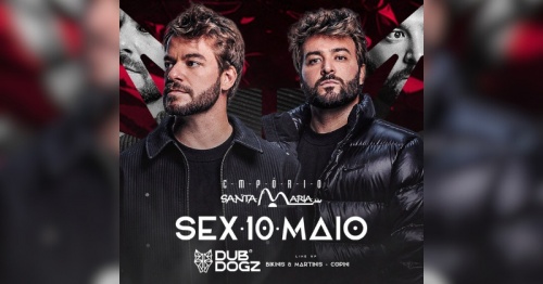 Preparem-se, amantes da música eletrônica! A dupla brasileira que está dominando a cena nacional e internacional, Dubdogz, está chegando ao Empório Santa Maria para uma noite inesquecível. Com seu som único e envolvente, os irmãos gêmeos Marcos e Lucas Schmidt prometem uma experiência musical de tirar o fôlego. Não perca a oportunidade de curtir ao vivo os sucessos que conquistaram o mundo e se prepare para dançar a noite toda!