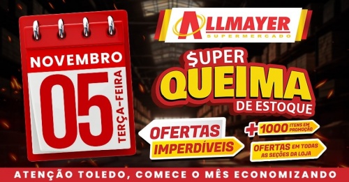Super Queima de Estoque dos Supermercados Allmayer será nesta terça-feira (05); confira