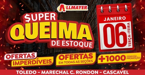 Prepare-se para um dia de grandes economias! Nesta terça-feira, dia 06 de janeiro, o Allmayer Supermercados promove a sua Super Queima de Estoque, oferecendo ofertas imperdíveis em suas três lojas em Toledo. São mais de 1.000 produtos em promoção em todos os setores, com descontos incríveis em frutas, verduras, carnes, laticínios e muito mais.