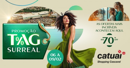 Entre os dias 6 e 9 de fevereiro, o Catuaí Shopping Cascavel realiza a sua primeira grande campanha de descontos: a Promoção Tag Surreal. Durante quatro dias, os consumidores da cidade e de toda a região poderão aproveitar descontos reais de até 70% em uma ampla variedade de produtos e serviços.