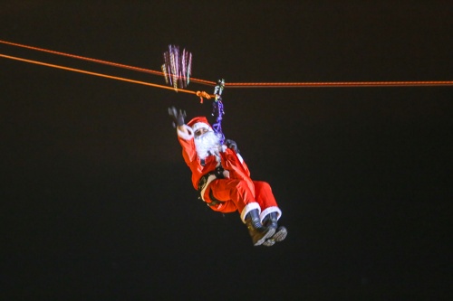 Após o show da Orquestra, foi realizada a contagem regressiva e foram acendidas as luzes da Praça, tudo para receber o bom velhinho. E ele veio de tirolesa. Com o apoio do Corpo de Bombeiros de Toledo, um dos principais símbolos do Natal desceu da torre da Catedral Cristo Rei até chegar no Largo São Vicente de Paulo para encantar as crianças e adultos presentes. Logo após, todos puderam tirar fotos e entregaram seus pedidos.
