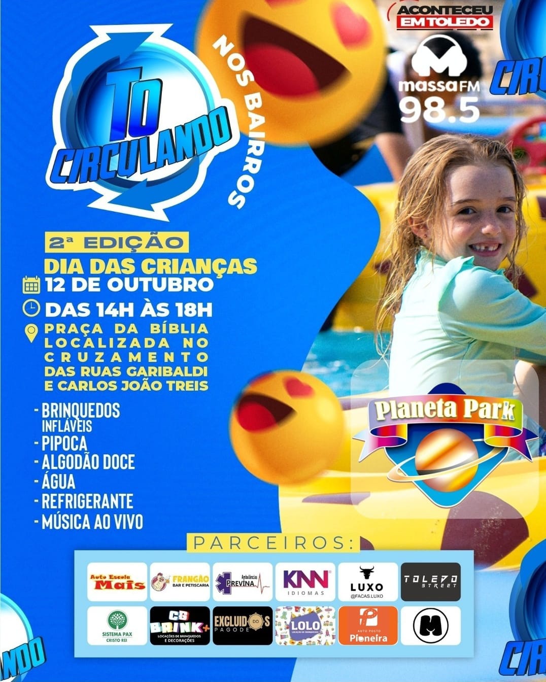 A Praça da Bíblia, na Vila Paulista, será o local da 2ª edição do "Tô Circulando", evento que será realizado das 14h00 às 18h00. Organizado pelo site "Tô Circulando" com o apoio da Rádio Massa FM, a festa será repleta de atrações gratuitas para as crianças, incluindo brinquedos infláveis, pipoca, algodão-doce, refrigerante, água e distribuição de picolés. A tarde também contará com música ao vivo, garantindo um dia de diversão e alegria para a comunidade local.