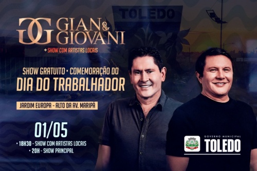 Hoje, 01º de maio, é dia de celebrar o trabalho em Toledo com o tradicional Show do Trabalhador, que trará a apresentação da dupla sertaneja Gian e Giovani. O evento, marcado para às 20h00, será realizado no Alto da Avenida Maripá, na região dos Jardins Europa/América, prometendo animar a cidade com grandes sucessos musicais.