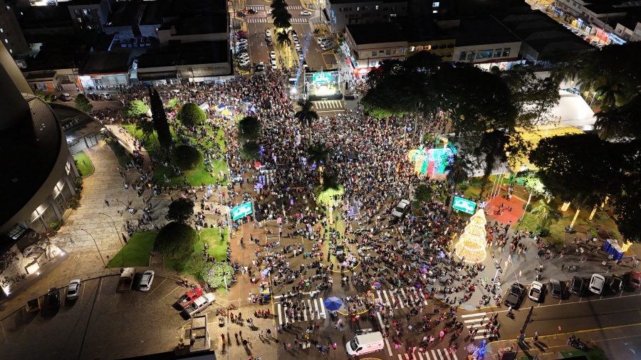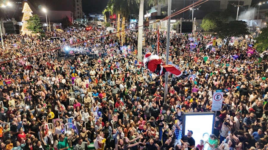 Na noite de terça-feira, 13 de novembro, foi dado início ao “Natal Encantado Toledo 2024”, com um evento de abertura que atraiu milhares de pessoas para a Praça Willy Barth, no centro da cidade. A celebração contou com a descida do Papai Noel pela Catedral Cristo Rei, onde ele desceu de tirolesa, jogando doces para as crianças. No mesmo local, foram acesas as luzes natalinas que marcam o começo das festividades na cidade. Autoridades locais e membros da Associação Comercial e Empresarial de Toledo (Acit) participaram da cerimônia, celebrando o início da temporada de eventos.