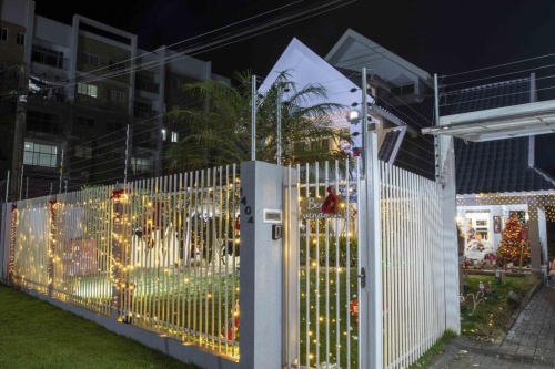 Bom para a família e para os negócios – Moradora do Jardim Pancera, Verni Schroeder foi a vencedora da categoria residencial na edição de 2022 do concurso. “No Natal, sempre decorei mais a parte interna da casa do que a externa. Naquele ano meu marido faleceu e a família ‘me abraçou’, ajudando a montar a decoração do lado de fora. Na época, fui viajar, fiquei uma semana fora e, no retorno, eles tinham feito tudo e me fizeram uma surpresa que me deixou emocionada”, recorda. “É uma época linda, tanto que, a partir de outubro, já começo a preparar o lar para o Natal. Considero um ‘passatempo’, que faz todos aqui de casa, sobretudo as crianças, viverem a magia desta data. Isso tudo me faz sentir uma alegria que nem tenho como medir, por isso, aconselho todos que fazem isso a também se inscrever para o concurso deste ano, algo que ainda pretendo fazer até domingo”, comenta.