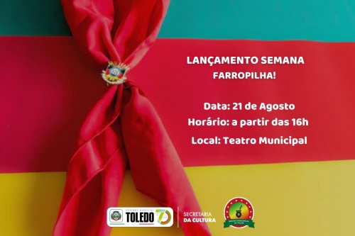Neste domingo (21), todos os holofotes do Teatro Municipal estarão apontados para o tradicionalismo gaúcho. A partir das 16 horas, o principal palco da cultura toledana receberá as atividades que marcam o lançamento da 13ª Semana Farroupilha e do 1º Festival Farroupilha de Toledo/Interpretação e Composição/Regional (Fesfat).