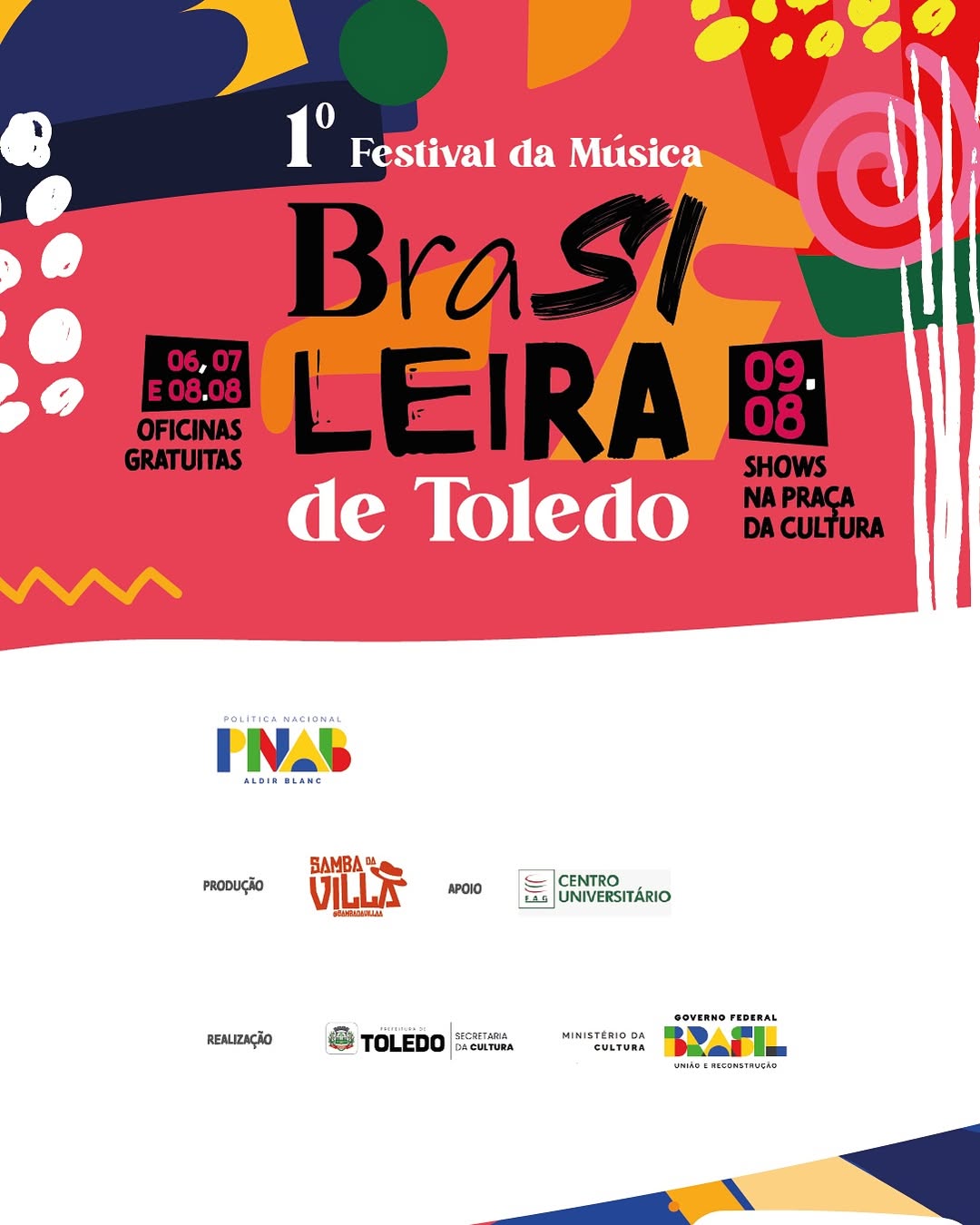 Entre os dias 06 e 09 de agosto, Toledo será palco do 1º Festival da Música Brasileira. O evento une formação artística e celebração cultural, com oficinas gratuitas e apresentações musicais ao vivo na Praça da Cultura. A entrada é gratuita em todas as atividades.