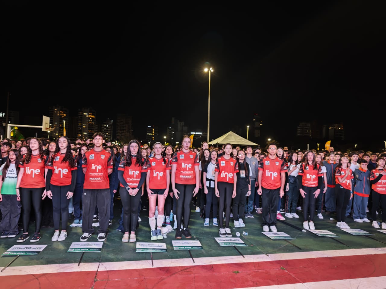 A noite também teve a participação ilustre do campeão olímpico Giba, que levantou o público com o seu discurso motivacional, distribuiu bolas autografadas e posou para fotos com os jovens atletas. “Recebi muito do esporte e hoje faço questão de retribuir apoiando iniciativas como essa. O Paraná é protagonista no desporto escolar”, declarou.