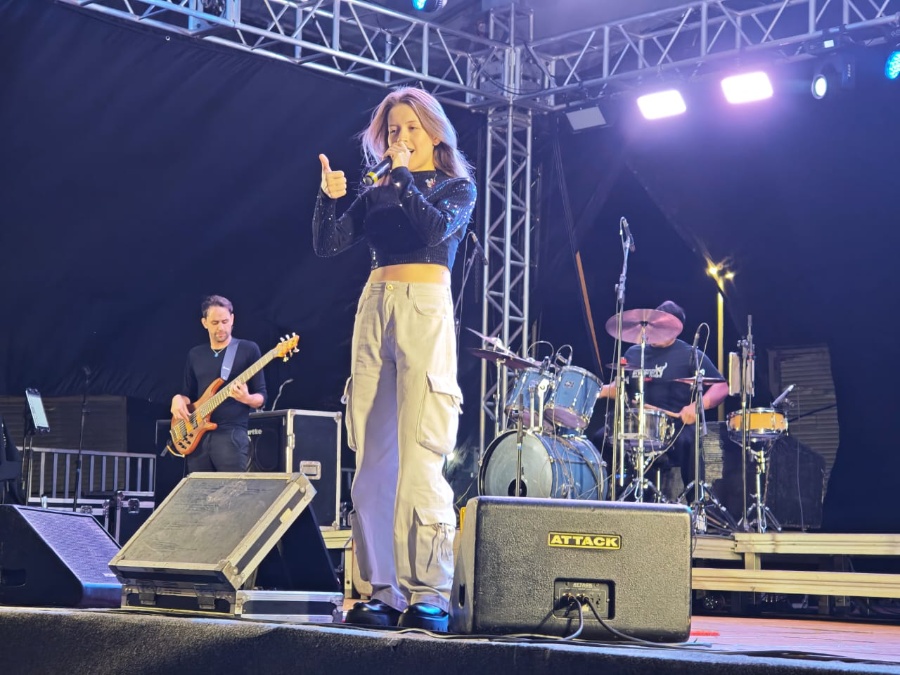 Encerrando a festa de abertura, a cantora Thayná Bitencourt subiu ao palco e animou o público com os seus sucessos e clássicos do sertanejo, colocando as pessoas para cantar e dançar à beira do Lago Municipal.