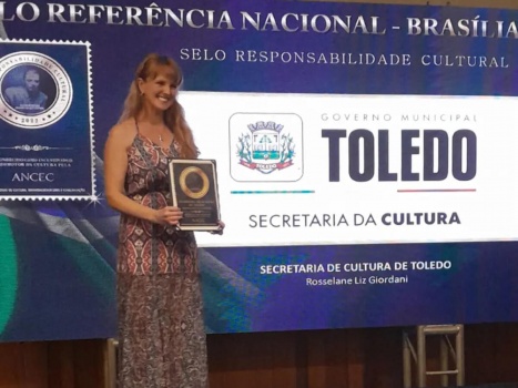 Mais uma vez, as políticas públicas no setor cultural ganharam destaque nacional. Na noite da última segunda-feira (13), em Brasília, Toledo esteve entre os três municípios do país homenageados pela Agência Nacional de Cultura, Empreendedorismo e Comunicação (Ancec) com o Certificado de Responsabilidade Cultural Nelson Rodrigues. A honraria, concedida ao município pelo segundo ano consecutivo, foi entregue em evento com coquetel e jantar de encerramento no Clube Naval.