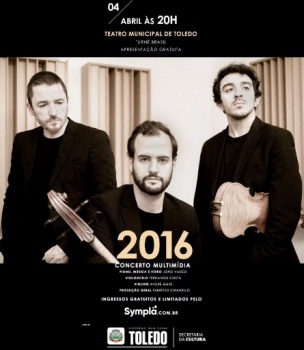Toledo recebe novamente o aclamado concerto português "2016" para uma única apresentação no Teatro Municipal, nesta quinta-feira, dia 04 de abril, às 20h00. O espetáculo multimídia, que fez sua estreia em Paris e Lisboa em 2019, apresenta obras inéditas para piano, violino e violoncelo, criadas por João Vasco, um renomado pianista com duas décadas de carreira e performances em quatro continentes.
