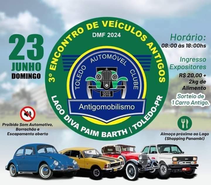 No próximo domingo, dia 23 de junho, Toledo será palco do Terceiro Encontro de Veículos Antigos, promovido pelo Toledo Automóvel Clube. O evento, que será no Parque Ecológico Diva Paim Barth (Lago Municipal), promete atrair mais de 1 mil veículos em exposição e reunir amantes de carros antigos de toda a região.