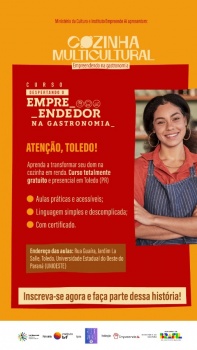 Toledo está recebendo uma nova iniciativa de fortalecimento do empreendedorismo popular na área da gastronomia. Trata-se do projeto “Cozinha Multicultural – Empreendendo na Gastronomia”, realizado pela Empreende Aí, que irá formar 35 pessoas da cidade, gratuitamente, para transformar seus talentos culinários em negócios sustentáveis. As inscrições vão até 2 de outubro.