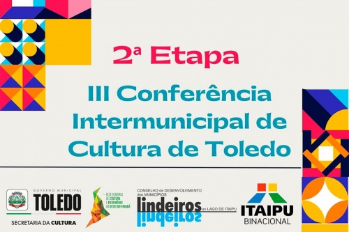 Posteriormente, das 10h40 às 12h, acontecerá a 2ª etapa da 3ª Conferência Intermunicipal da Cultura de Toledo. Este momento – que será presidido pela secretária da Cultura de Toledo, Rosselane Giordani – reserva-se à participação de gestores e agentes culturais vindos de 17 municípios (Braganey, Brasilândia do Sul, Campo Bonito, Capitão Leônidas Marques, Corbélia, Entre Rios do Oeste, Marechal Cândido Rondon, Matelândia , Mercedes, Missal, Nova Aurora, Nova Santa Rosa, Ouro Verde do Oeste, Palotina, Serranópolis do Iguaçu, Toledo e Vera Cruz do Oeste) que contribuíram para o êxito da 1ª etapa, realizada em maio deste ano.