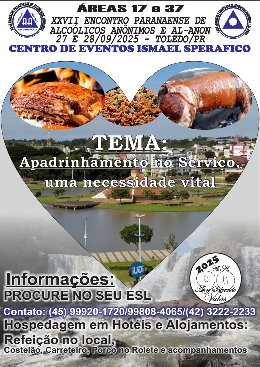 Toledo será sede, nos dias 27 e 28 de setembro de 2025, do XXVII Encontro Paranaense de Alcoólicos Anônimos (AA) e Al-Anon, um dos maiores eventos do movimento no estado. A programação será realizada no Centro de Eventos Ismael Sperafico e deve reunir participantes de diversas regiões, fortalecendo o compromisso com a recuperação, a solidariedade e a troca de experiências.