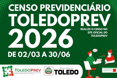 Os servidores públicos municipais de Toledo com vínculo estatutário – ativos, inclusive os que estejam afastados, licenciados ou cedidos, além de aposentados e pensionistas – deverão participar, entre 2 de março e 30 de junho, do Censo Previdenciário coordenado pelo Fundo de Aposentadorias e Pensões dos Servidores Públicos Municipais (Fapes/Toledoprev). A participação é obrigatória e quem não realizar o recadastramento dentro do prazo terá o pagamento dos vencimentos suspenso até que a situação cadastral seja regularizada.