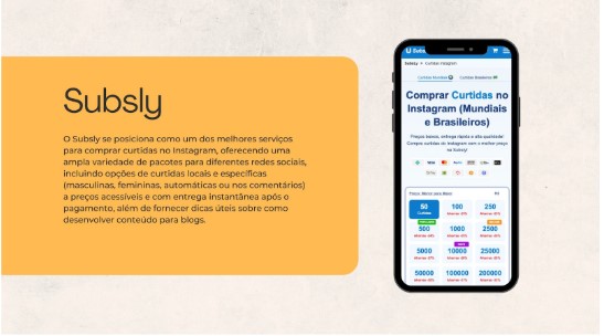 O Subsly é visto por muitos como a escolha nº 1 quando se fala de site para comprar curtidas no Instagram, oferecendo dezenas de opções de pacotes para diferentes redes sociais, incluindo, claro, o Instagram.