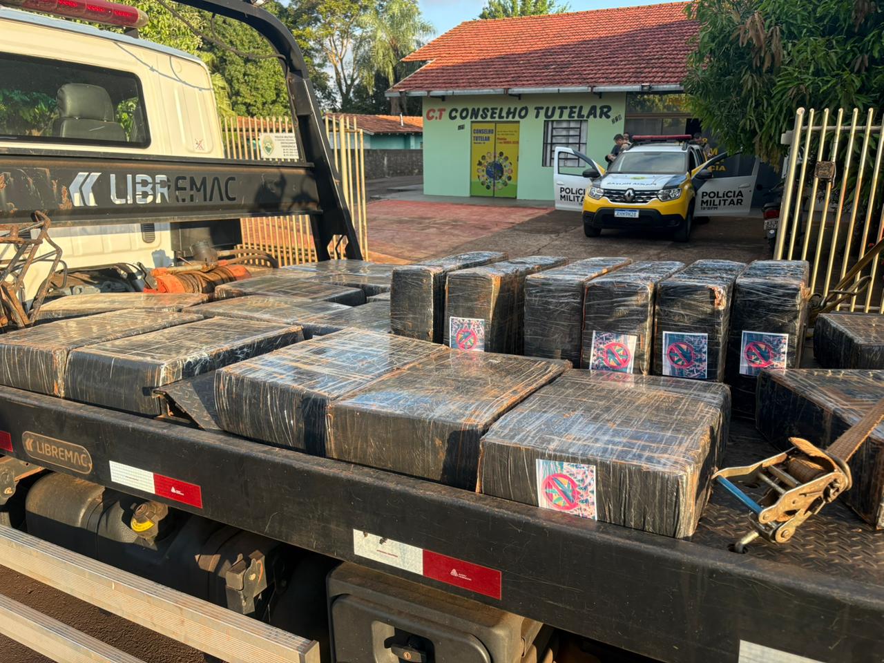 Dentro da residência foi apreendida a grande quantidade de entorpecente e as três motos Honda CG, todas furtadas em Toledo, foram encontradas. Também foram apreendidos celulares, drone, binóculos e uma arma de fogo, com munições