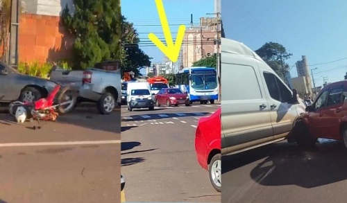A primeira aconteceu nas proximidades do cruzamento com a Rua Nossa Senhora do Rocio, envolvendo uma motocicleta e dois carros. Conforme as informações apuradas pela equipe de reportagem do Toledo News, a moto foi estacionar, momento que foi atingida por um GM Celta. Com a batida, os veículos atingiram ainda uma picape GM Montana.