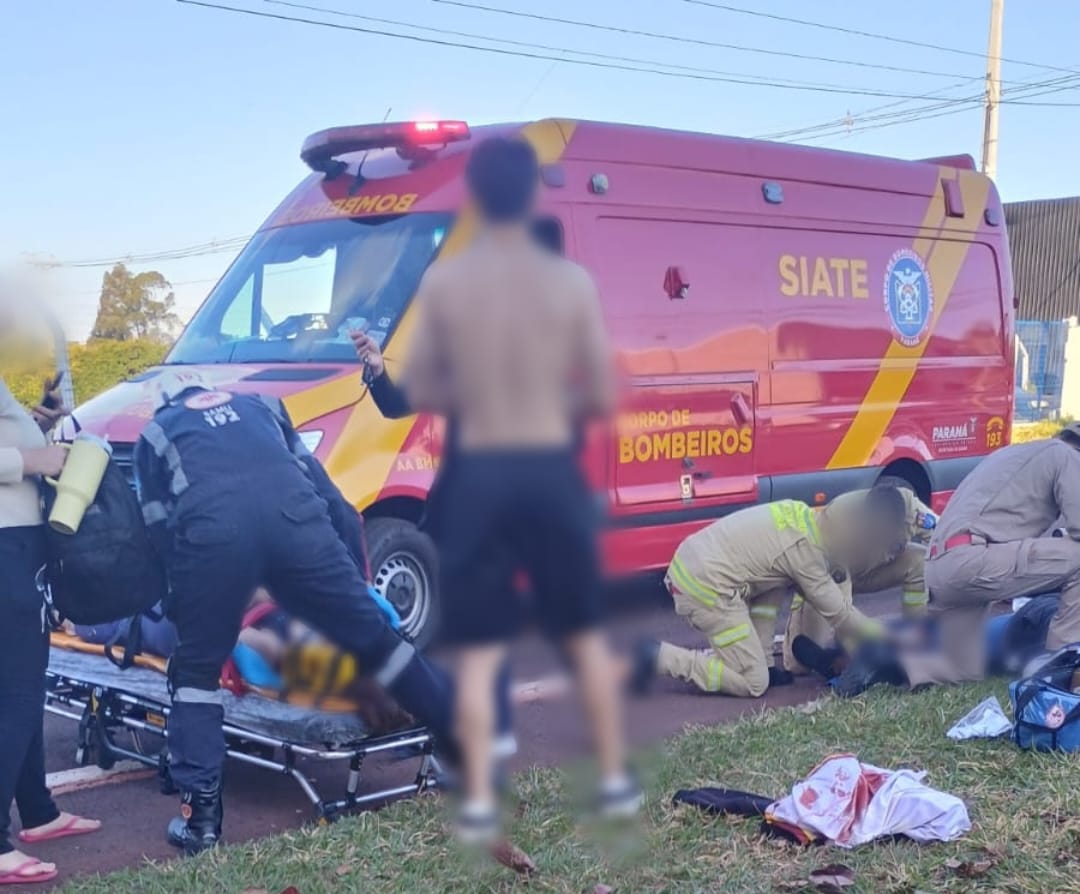 Três pessoas foram encaminhadas a uma Unidade de Pronto Atendimento (UPA) após um acidente envolvendo duas motocicletas em Toledo. A batida foi registrada pouco antes das 17h00 desta terça-feira, 08, na Avenida Nossa Senhora de Fátima, localizada no bairro Jardim Porto Alegre.