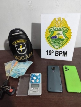 Com um dos ocupantes do veículo, a Polícia encontrou seis buchas de cocaína, totalizando 02,80 gramas, escondidas dentro de seu tênis e meia. Dentro do carro, também foram apreendidos R$ 224,00 em dinheiro e dois celulares.
