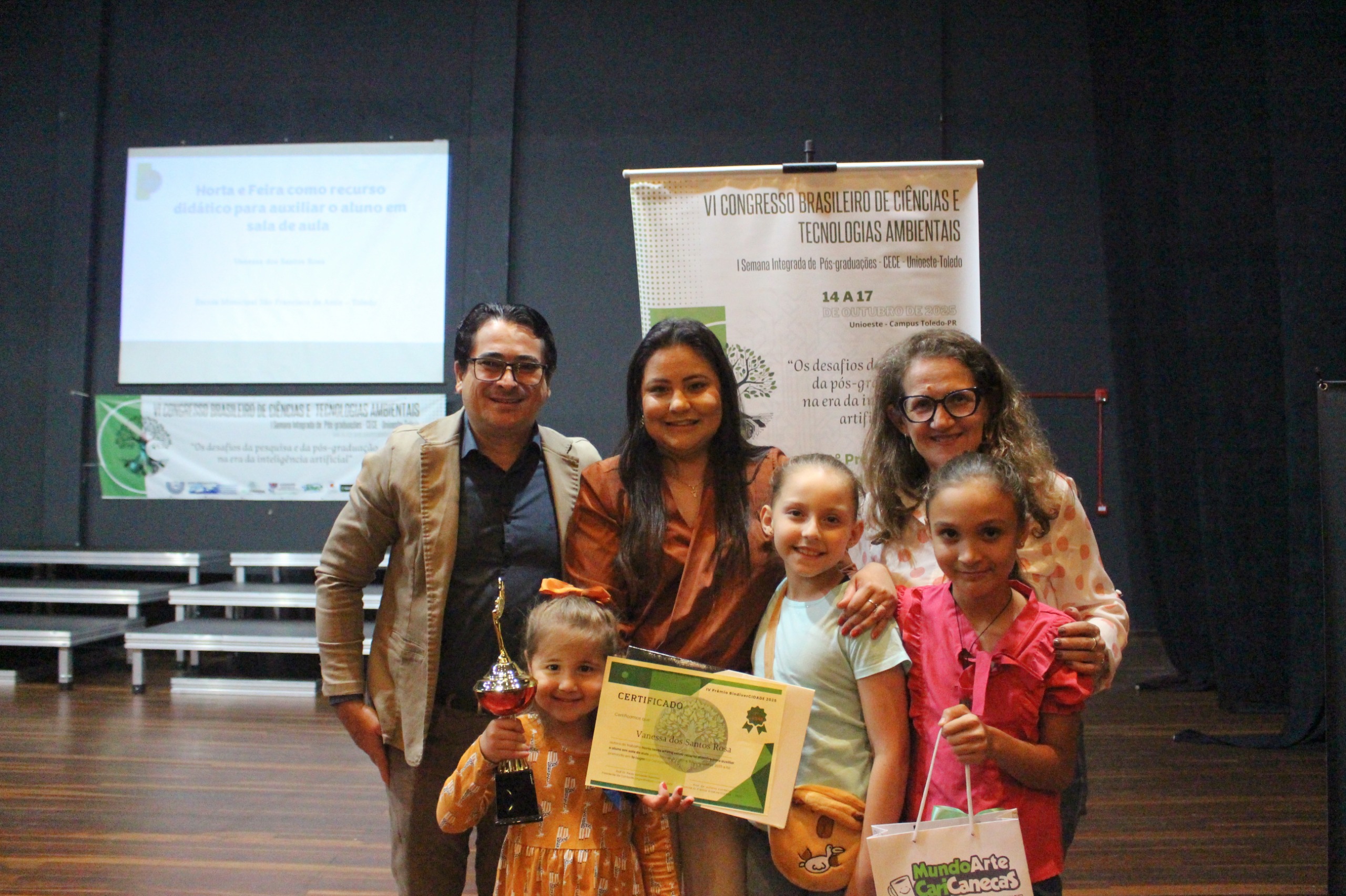 A Universidade Estadual do Oeste do Paraná (Unioeste), campus de Toledo, realizou, na última sexta-feira (17), a cerimônia de premiação do 4º Prêmio Toledo BiodiverCIDADE, iniciativa que reconhece e valoriza projetos e práticas pedagógicas voltadas à educação ambiental, sustentabilidade e conservação da biodiversidade. O evento integrou a programação de encerramento do VI Congresso Brasileiro de Ciências e Tecnologias Ambientais e da I Semana Integrada de Pós-Graduações do Centro de Engenharias e Ciências Exatas (CECE).