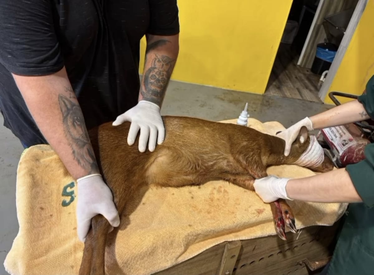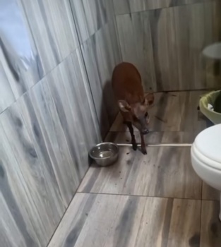 Veado bororó é resgatado no banheiro de empresa de Toledo e devolvido à natureza após atendimento veterinário
