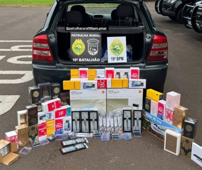 O veículo, um GM Astra, foi interceptado pelos policiais após levantar suspeitas por possível envolvimento com contrabando ou descaminho. Ao realizarem a vistoria, os militares localizaram uma grande quantidade de produtos eletrônicos e de uso pessoal transportados de forma irregular.