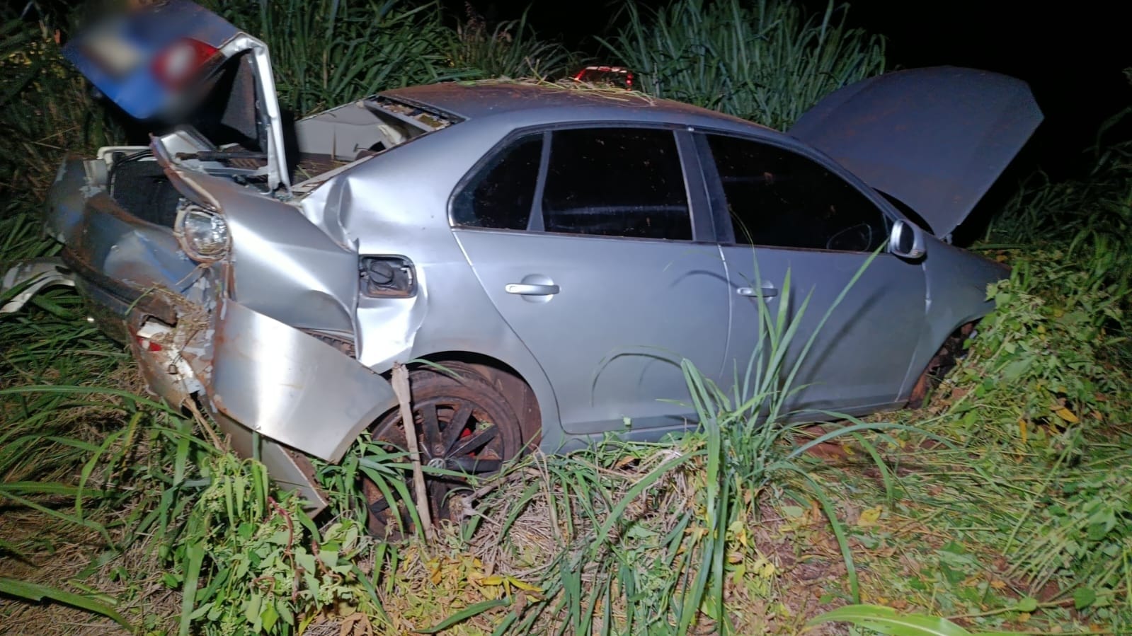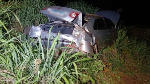 Após a perda de controle, o veículo saiu da pista e acabou parando em meio a uma área de vegetação às margens da rodovia. O impacto resultou em danos de grande monta no automóvel.
