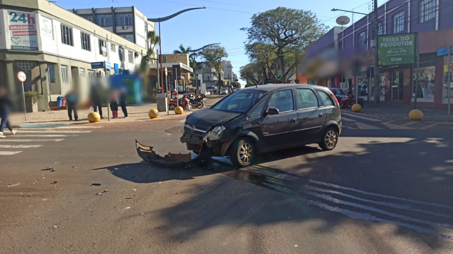 Um acidente de trânsito envolvendo dois veículos foi registrado logo no início da manhã desta quarta-feira (14), em Toledo. A colisão ocorreu no cruzamento das ruas Almirante Barroso e 15 de Novembro, no Centro da cidade e envolveu um GM Meriva e um Fiat Mobi, este do Circo dos Sonhos.