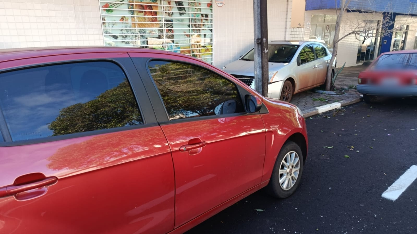 Veículos invadem calçada e atingem fachada de comércio após colisão no Centro de Toledo