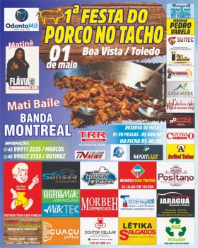 No dia 01º de maio comemoramos o Dia do Trabalhador, e em uma data especial como essa nada melhor do que uma grande festa para abrilhantar ainda mais o dia. O domingo 01º de maio de 2022 será marcado também pela realização da 1ª Festa do Porco no Tacho de Boa Vista. O evento ocorre no Clube do distrito de Boa Vista, em Toledo.