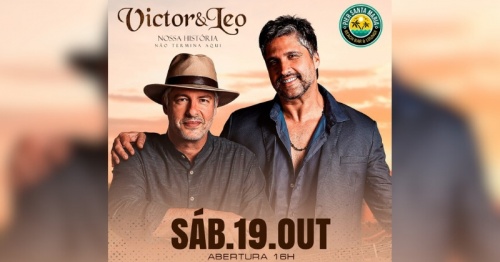 O show será realizado no próximo sábado, dia 19 de outubro, no Píer Santa Maria em Toledo, com abertura da casa às 16h00. Não perca essa chance de ver Victor & Leo de perto!