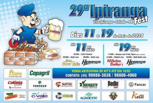 No próximo domingo (19), a comunidade de Vila Ipiranga, em Toledo, estará em festa com a 29ª edição da Ipiranga Fest. O evento promete um dia repleto de atividades para toda a família, com destaque para a gastronomia e apresentações musicais.