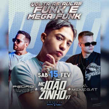 MC Joãozinho VT será o grande destaque da noite, tocando os seus maiores hits. DJ Pedro Martins e DJ Menegat completam a festa com sets animados para todo mundo dançar.