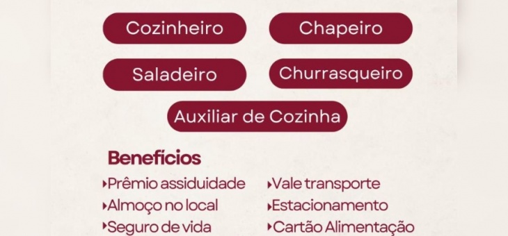 Cotidiano Restaurante Filezão de Toledo contrata Cozinheiro, Chapeiro, Saladeiro, Churrasqueiro e Auxiliar de Cozinha; envie o seu currículo aqui 1 mês atrás