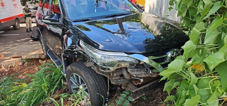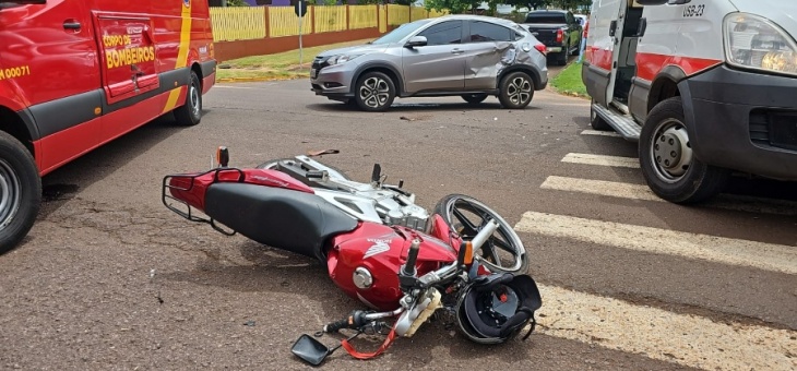 Policial Motociclista sofre fratura no tornozelo após acidente em rotatória do Jardim Porto Alegre 10 meses atrás